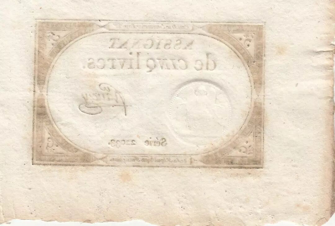 Billet France 5 Livres - 10 Brumaire An II (31.10.1793) - Sign. Bancey - Série 22033
