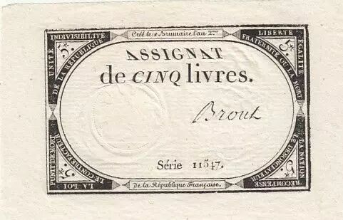 Billet France 5 Livres - 10 Brumaire An II (31.10.1793) - Sign. Brout - Série 23661