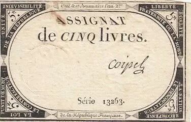 Billet France 5 Livres - 10 Brumaire An II (31.10.1793) - Sign. Coipel - Série 13263
