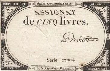 Billet France 5 Livres - 10 Brumaire An II (31.10.1793) - Sign. Droüet - Série 17004