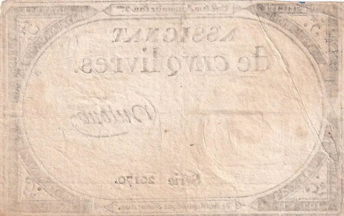 Accueil > Billets Français > Assignats > France 5 Livres - 10 Brumaire An II (31.10.1793) - Sign. Duval - Série 14568