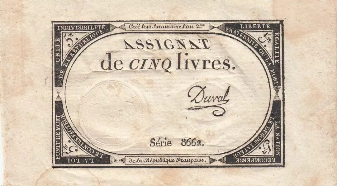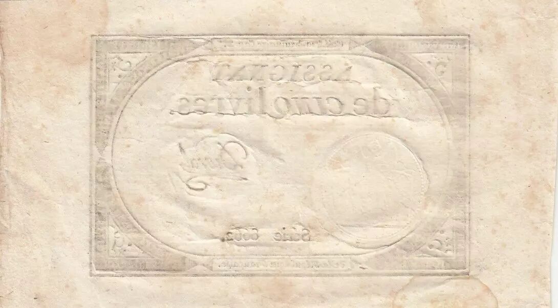 Accueil > Billets Français > Assignats > 5 Livres > France 5 Livres - 10 Brumaire An II (31.10.1793) - Sign. Duval - Série 8662