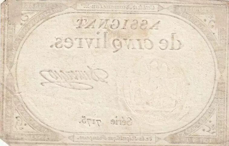 Accueil > Billets Français > Assignats > France 5 Livres - 10 Brumaire An II (31.10.1793) - Sign. Duverger - Série 7175