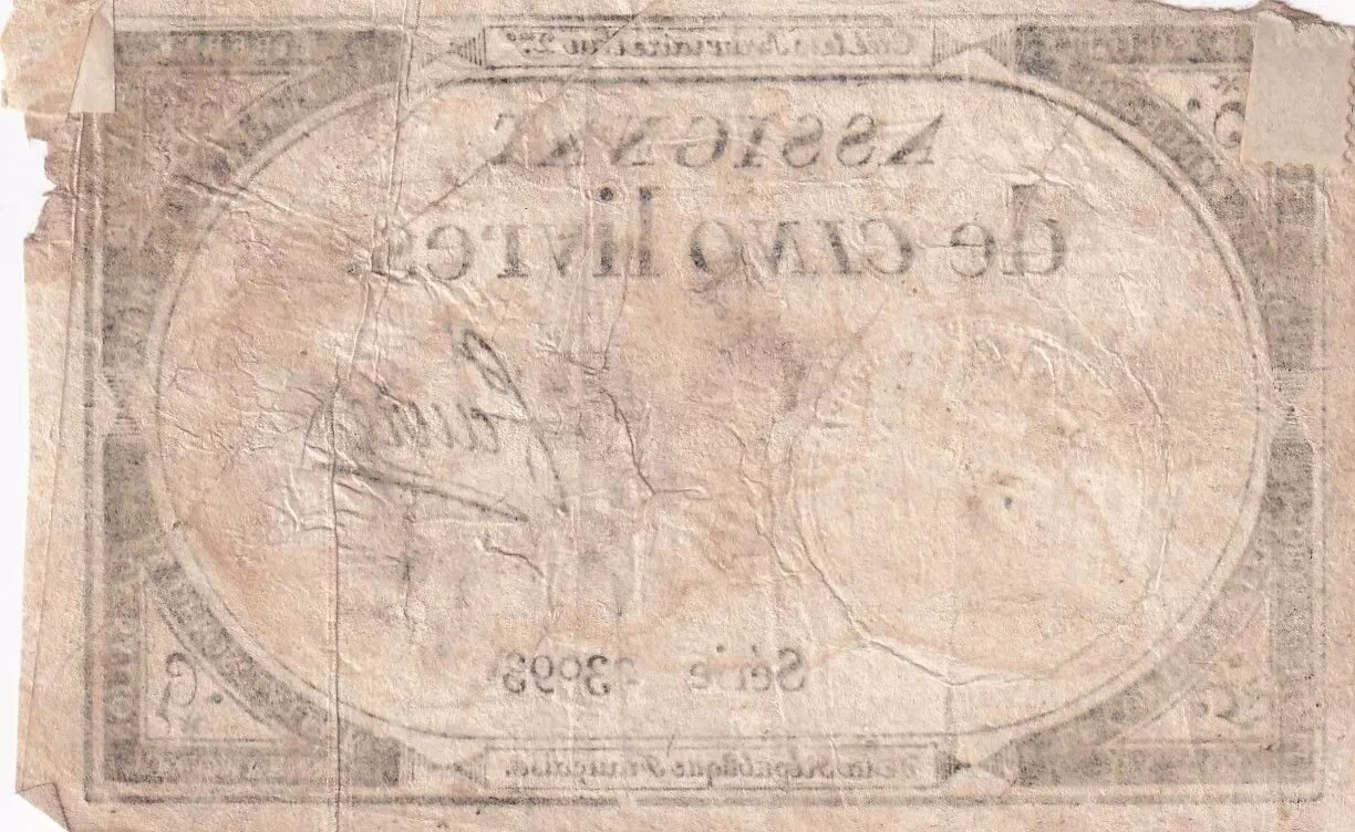 Accueil > Billets Français > Assignats > France 5 Livres - 10 Brumaire An II (31.10.1793) - Sign. Faure - Série 23093