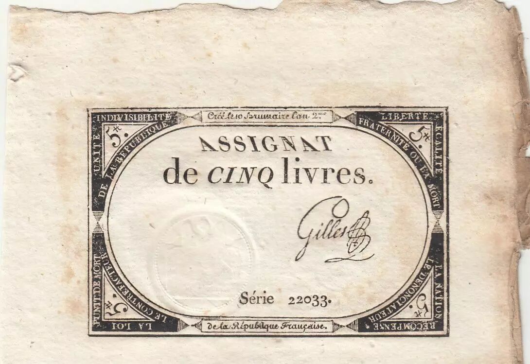 Home > > France 5 Livres - 10 Brumaire An II (31.10.1793) - Sign. Gilles - Serial 22033