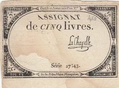 Billet France 5 Livres - 10 Brumaire An II (31.10.1793) - Sign. Lachapelle - Série 27543