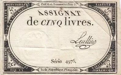 Billet France 5 Livres - 10 Brumaire An II (31.10.1793) - Sign. Leullier - Série 17004