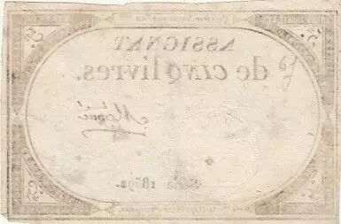 Billet France 5 Livres - 10 Brumaire An II (31.10.1793) - Sign. Mégnie - Série 18592