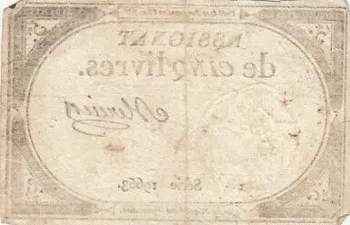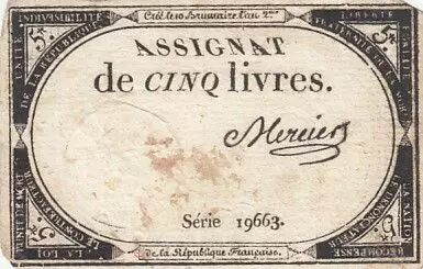 Billet France 5 Livres - 10 Brumaire An II (31.10.1793) - Sign. Mercier - Série 19663
