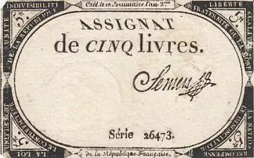 Billet France 5 Livres - 10 Brumaire An II (31.10.1793) - Sign. Semen - Série 26473