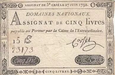 Accueil > Billets Français > Assignats > France 5 Livres - 27 Juin 1792 - Sign. Corsel - Série 15E