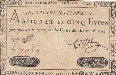 Accueil > Archivage > archivage-Billets Français > France 5 Livres - 31 Juillet 1792 - Sign. Corsel - Série 22F