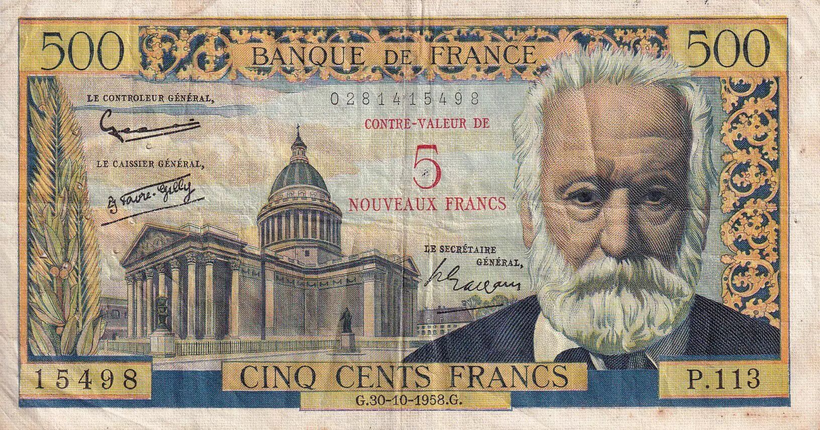 Banknote France 5 NF on 500 Francs - Victor Hugo - 1958 - Serial P.113 - P.137
