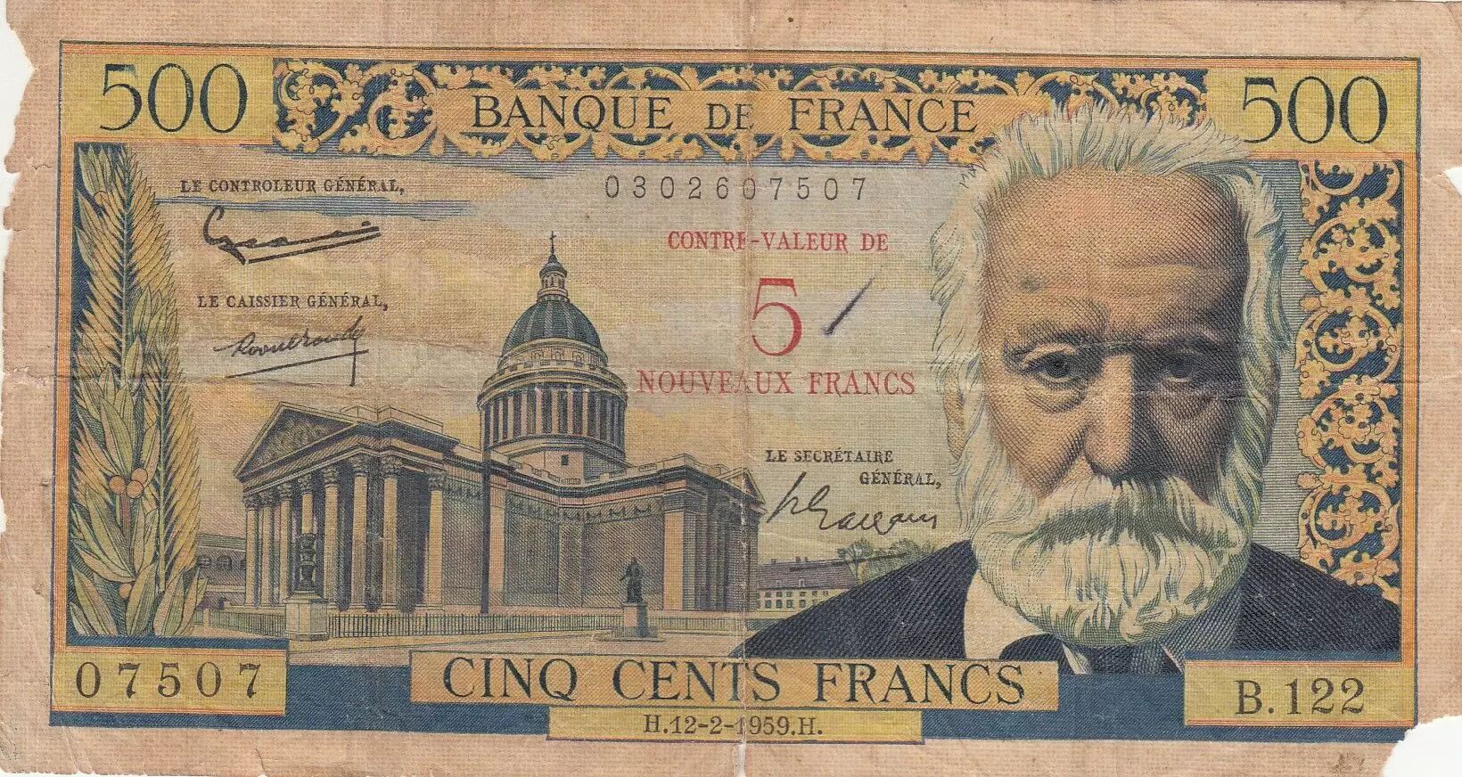 Le billet de 5 nouveaux francs, émis le 12 février 1959, est imprimé sur les deux faces. Il fait partie de la série B.122. Ses dimensions sont de 140 millimètres de largeur et 75 millimètres de hauteur.