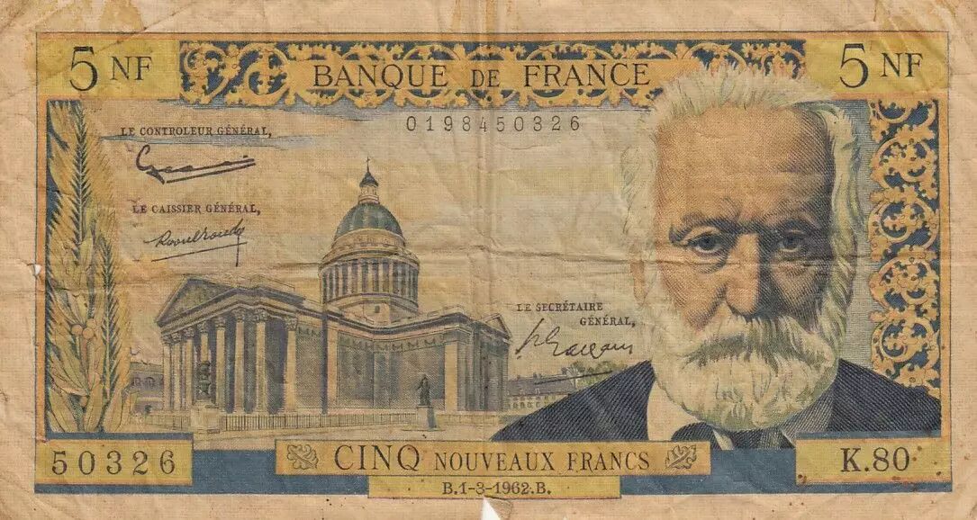 Banknote France 5 NF Victor Hugo - 01-03-1962 - Serial K.80