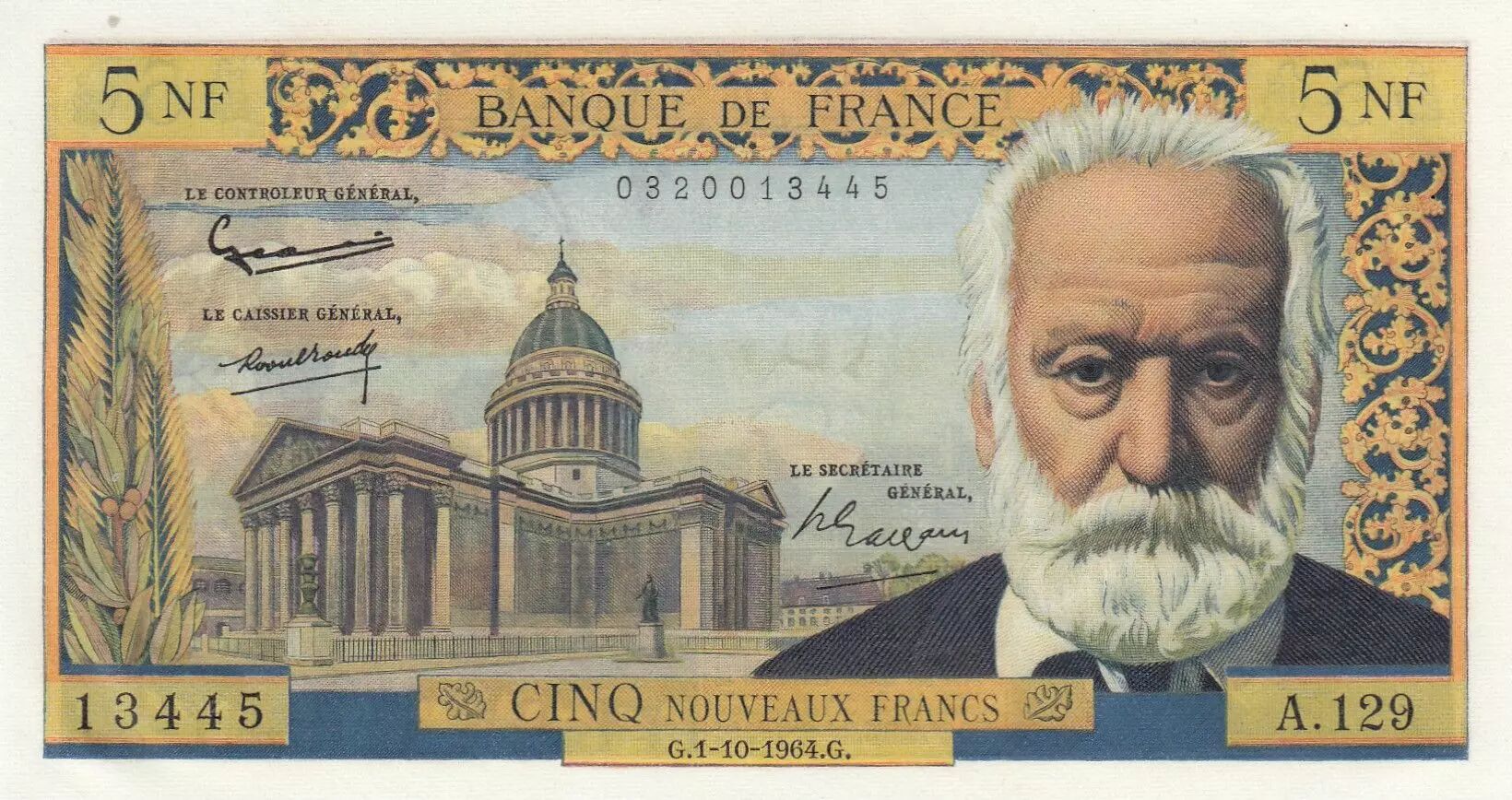 Banknote France 5 NF - Victor Hugo - 01-10-1964 - Serial A.129