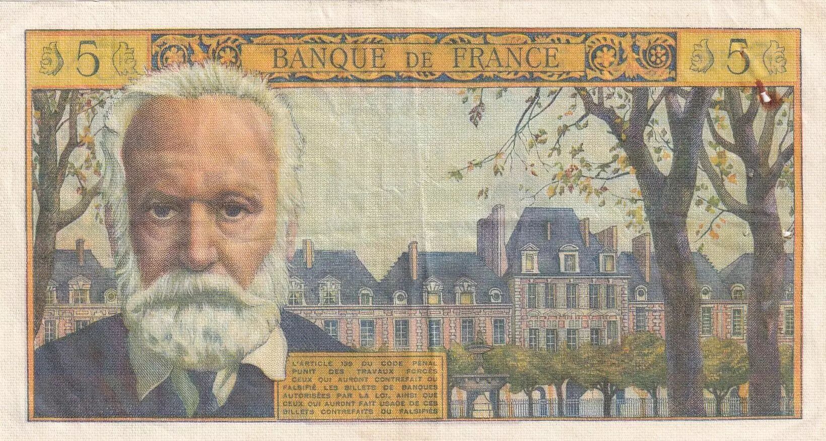 Banknote France 5 NF Victor Hugo - 01-10-1964 - Serial B.124