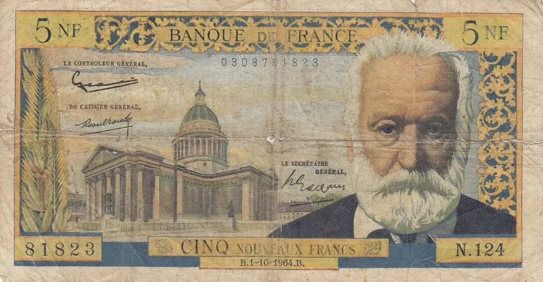 Billet France 5 NF Victor Hugo - 01-10-1964 - Série N.124