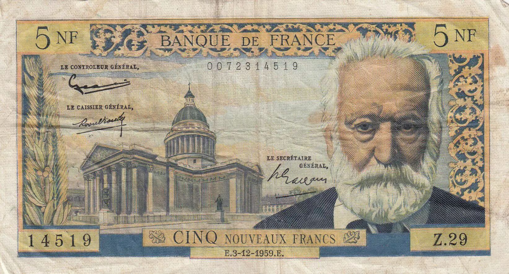 Billet France 5 NF Victor Hugo - 03-12-1959 Série Z.29 - TTB