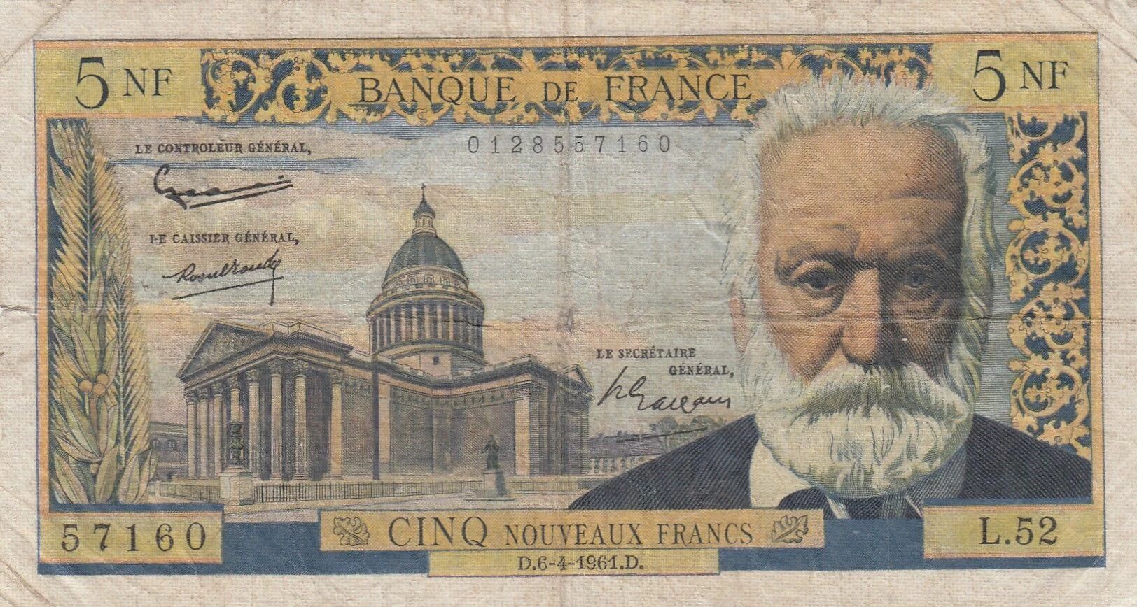 Billet France 5 NF Victor Hugo - 06-04-1961 - Série L.52