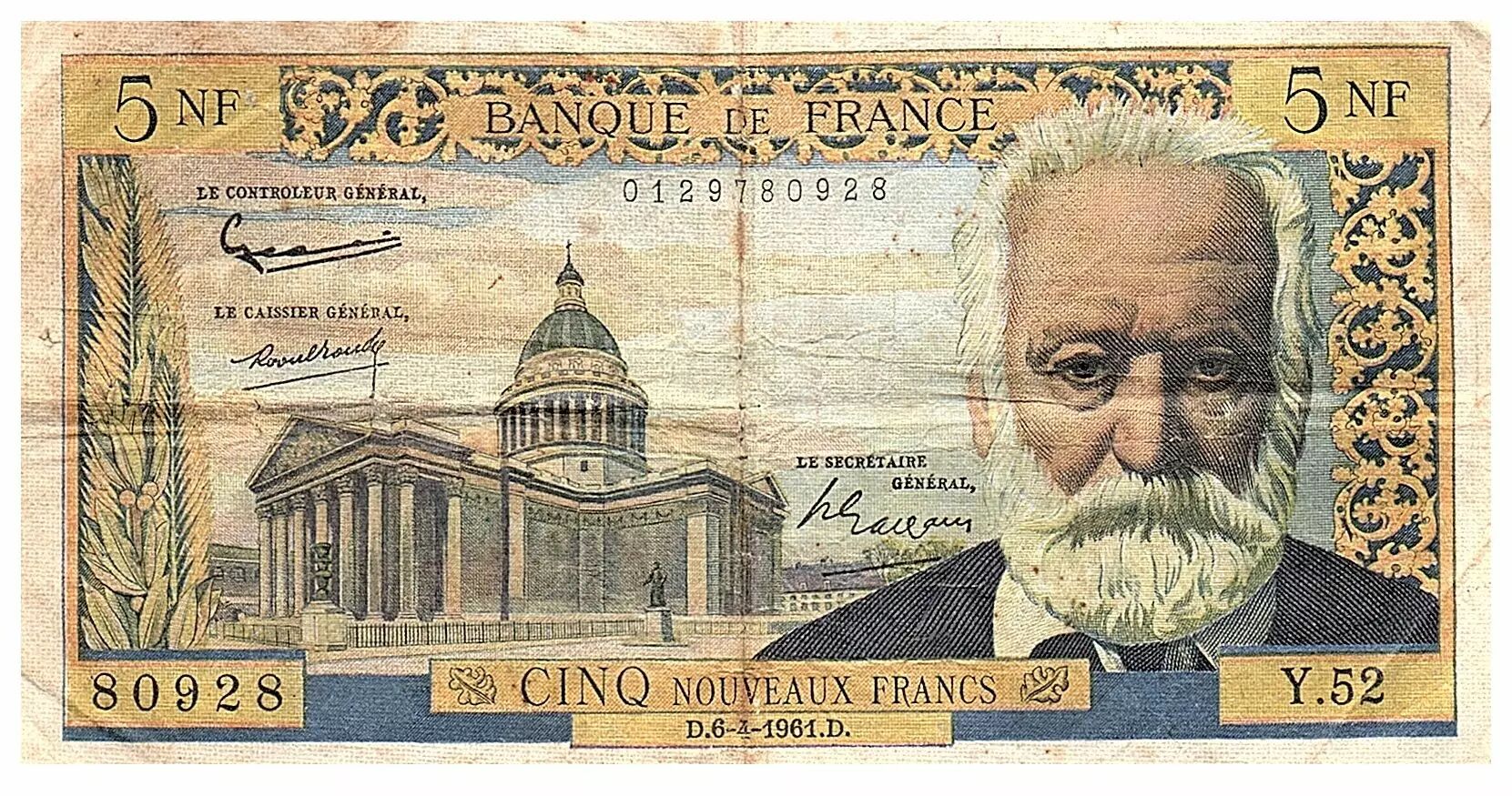 Accueil > Archivage > archivage-Billets Français > France 5 NF Victor Hugo - 06-04-1961 - Série Y.52 - Fay.56.07