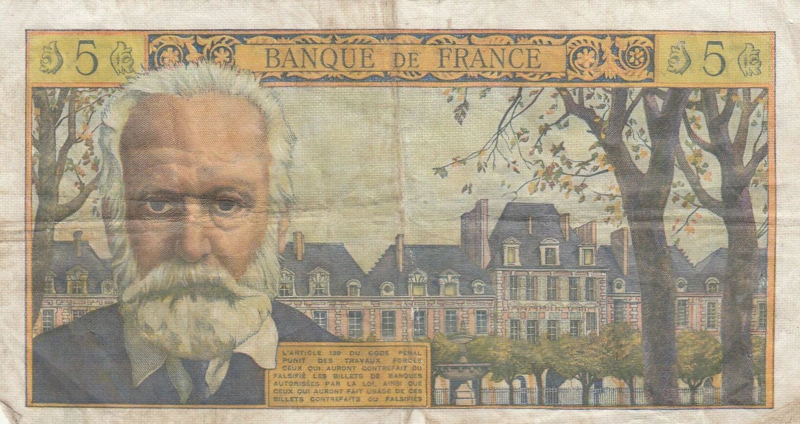 The front of the banknote features a portrait of Victor Hugo positioned on the right. In the background, a representation of the Panthéon is visible.