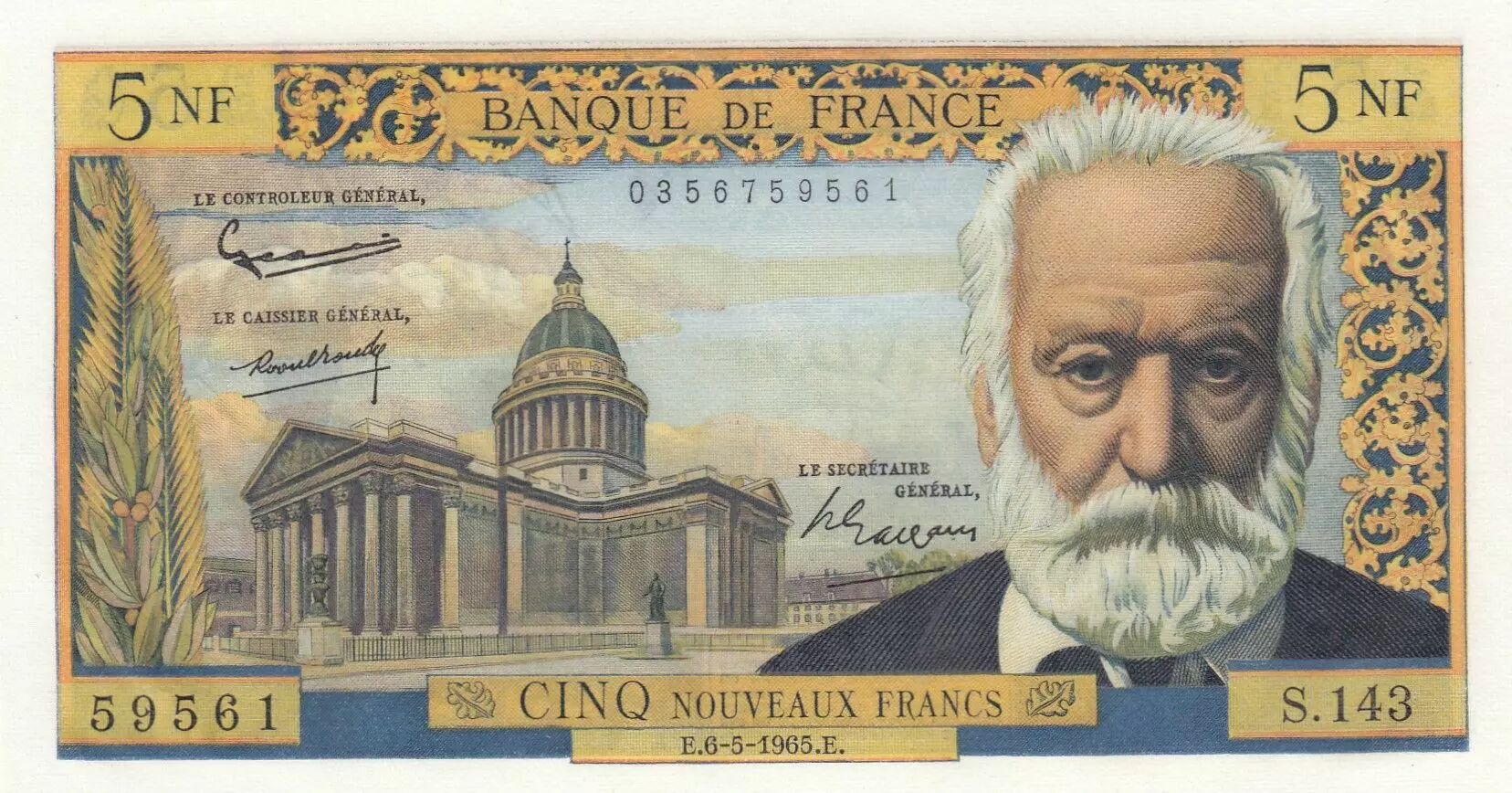 Banknote France 5 NF - Victor Hugo - 06-05-1965 - Serial S.143