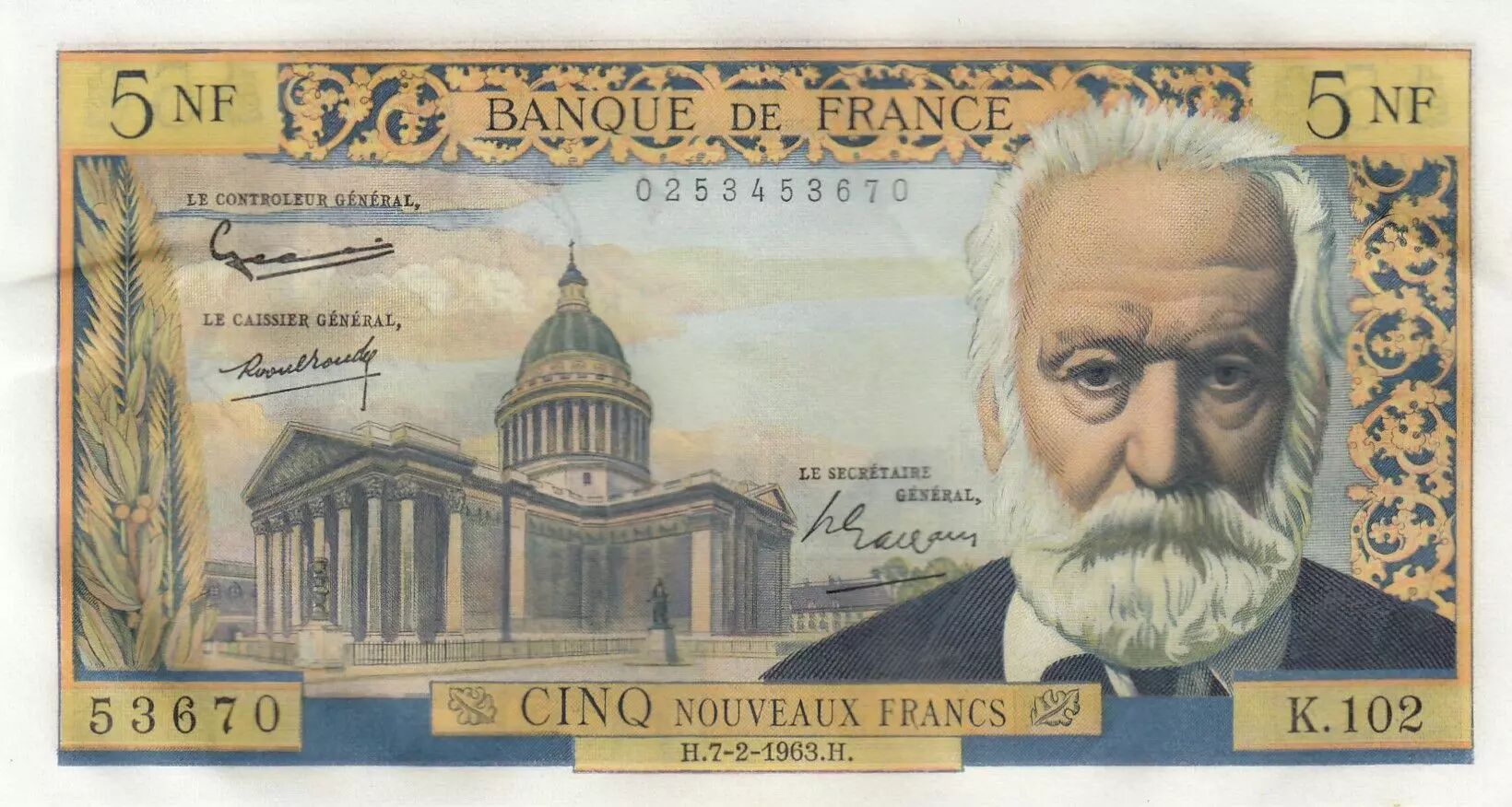 Banknote France 5 NF - Victor Hugo - 07-02-1963 - Serial K.102