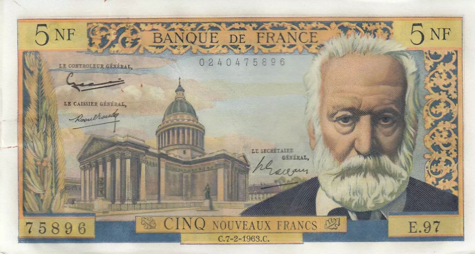 Billet France 5 NF - Victor Hugo - 07-02-1963 - Série E.97
