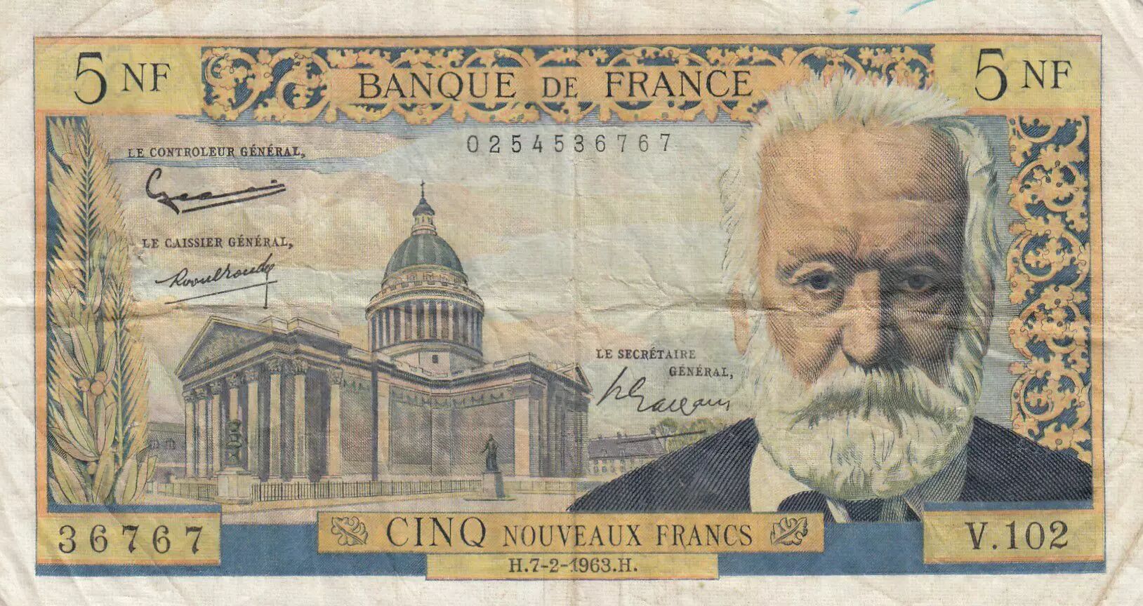Billet France 5 NF Victor Hugo - 07-02-1963 Série V.102 - TTB