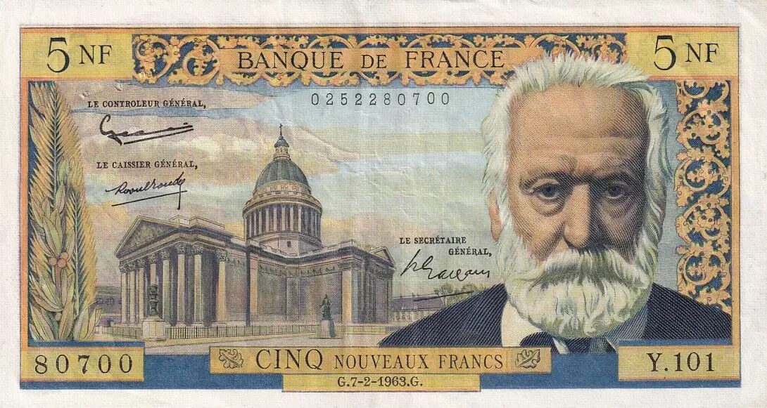 Billet France 5 NF Victor Hugo - 07-02-1963 Série Y.101