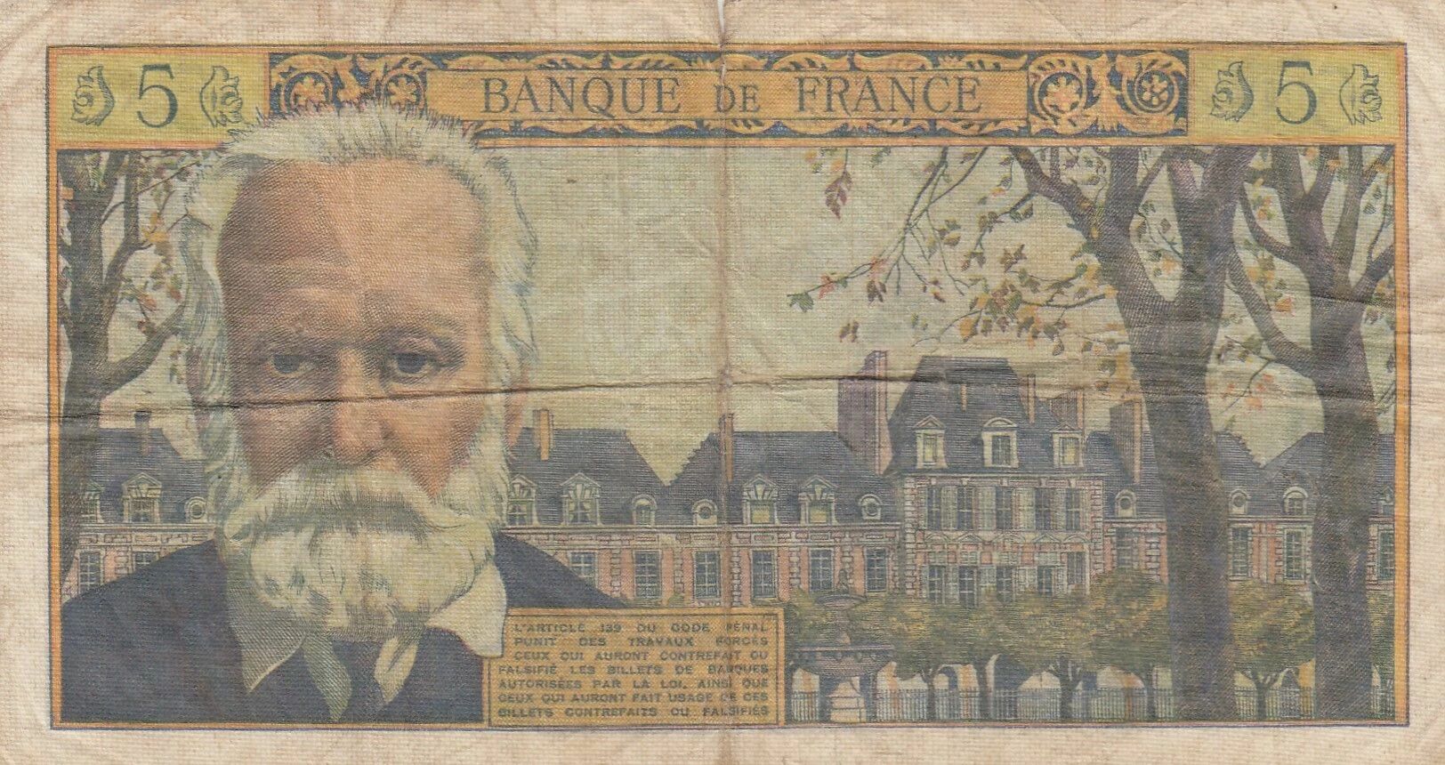 Le produit est un billet de banque français, d'une valeur nominale de 5 francs. Il a été émis le 15 octobre 1959 et appartient à la série G.23. Le billet pèse 1 gramme et mesure 140 millimètres de long pour 75 millimètres de large.