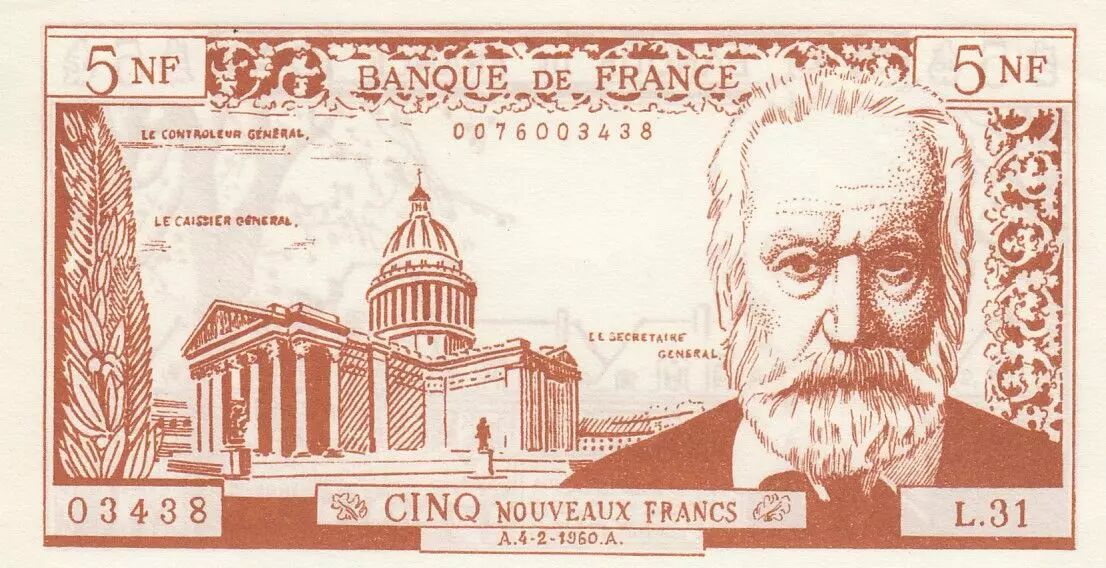 Billet France 5 NF - Victor Hugo - Billet scolaire - 1960