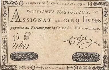 Banknote France 5 Pounds - 01-11-1791 - Sign. Corsel - Serial 45G