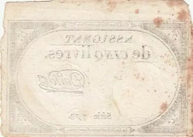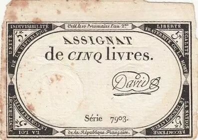 Banknote France 5 Pounds - 10 Brumaire Year II (31.10.1793) - Sign. David - Serial 7903