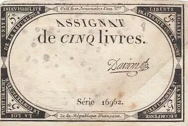 Banknote France 5 Pounds - 10 Brumaire Year II (31.10.1793) - Sign. Davion - Serial 16962