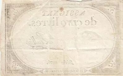 Banknote France 5 Pounds - 10 Brumaire Year II (31.10.1793) - Sign. Leullier - Serial 17004