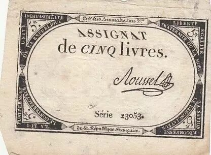 Banknote France 5 Pounds - 10 Brumaire Year II (31.10.1793) - Sign. Roussel - Serial 23053