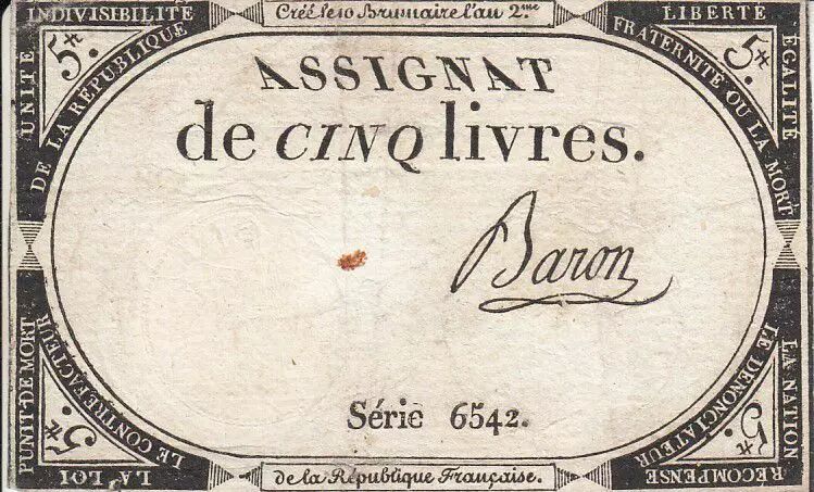 Banknote France 5 Pounds 10 Brumaire Year II (31.10.1793) - various signatures - VF