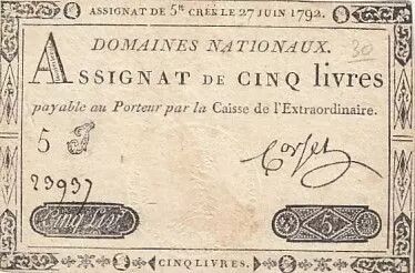 Banknote France 5 Pounds - 27-06-1792 - Sign. Corsel - Serial 5J