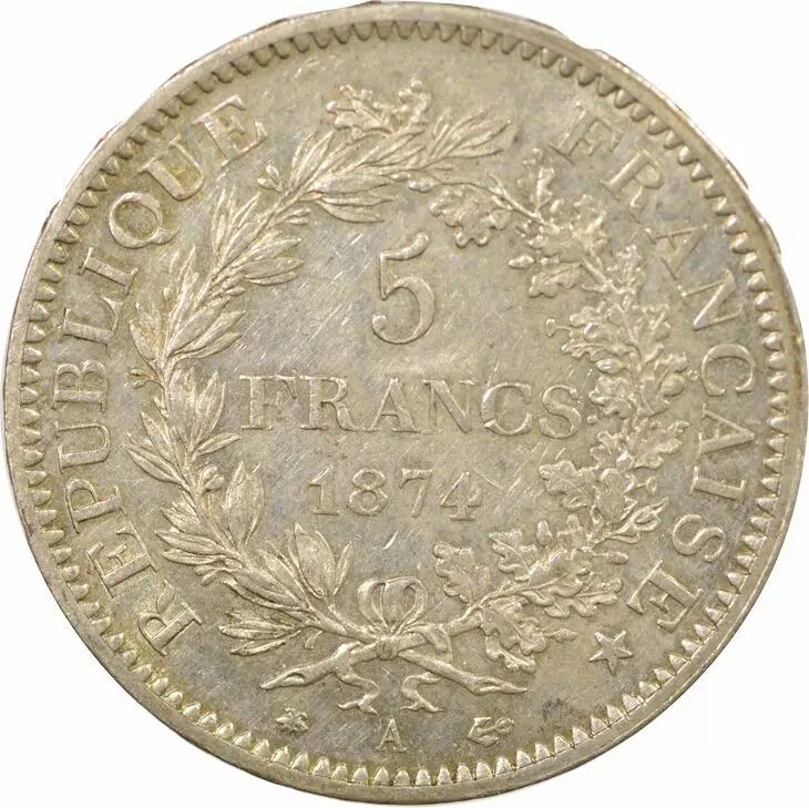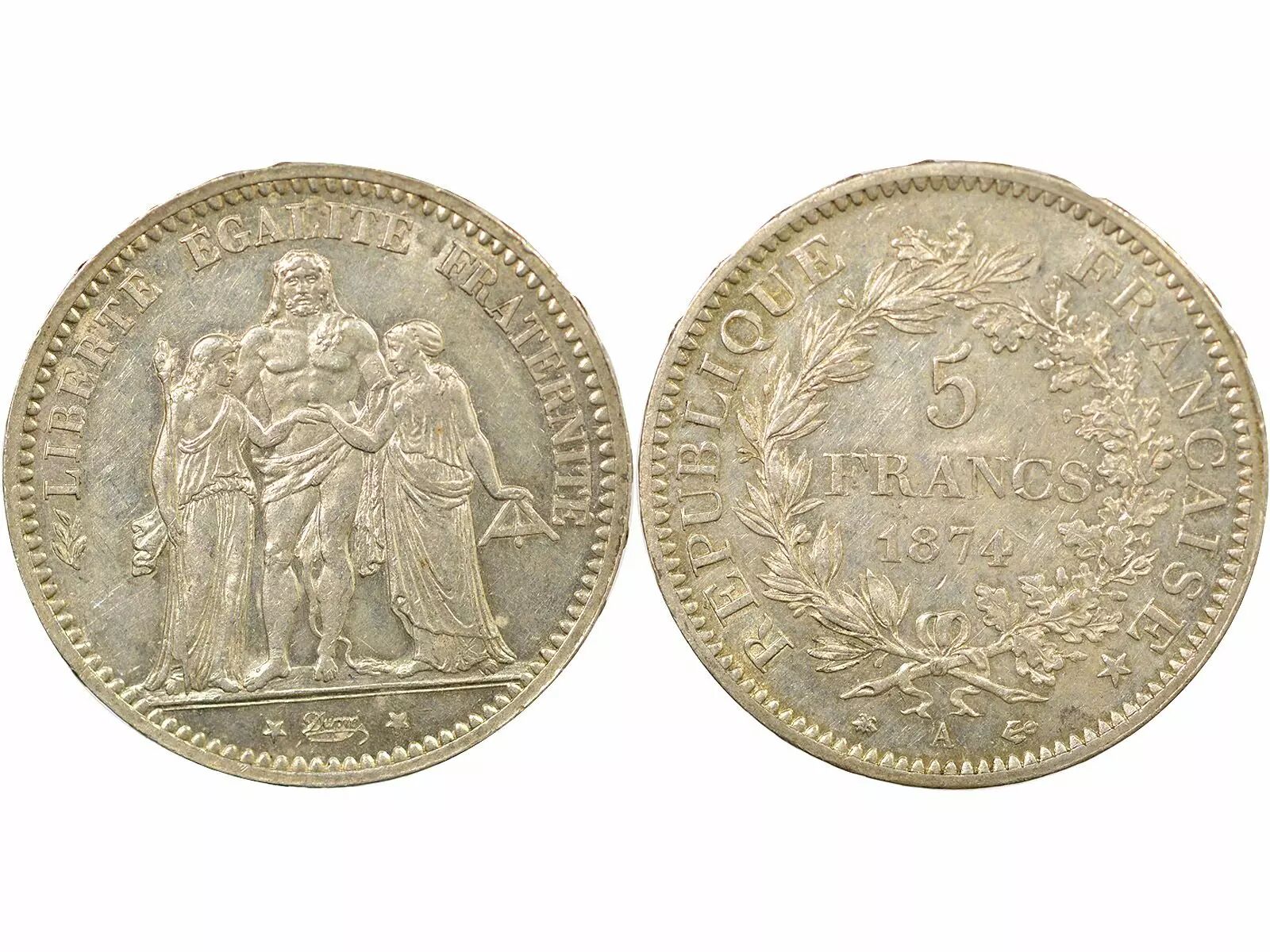 Coin France 5 Silver Francs, Hercules, Third Republic - 1874 In Paris