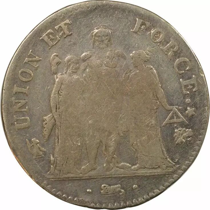 Home > French coins (470 à 2002) > Modern Currencies (1789 to 2002) > 5 Francs > France 5 Silver Francs, Union & Force - Year 7. L Bayonne