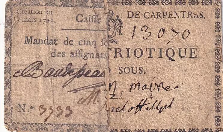 Deux moitiés de billet recollées, plis, salissures