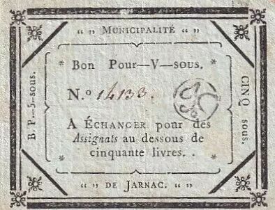 Billet France 5 Sols - Charente Municipalité de Jarnac - 1792