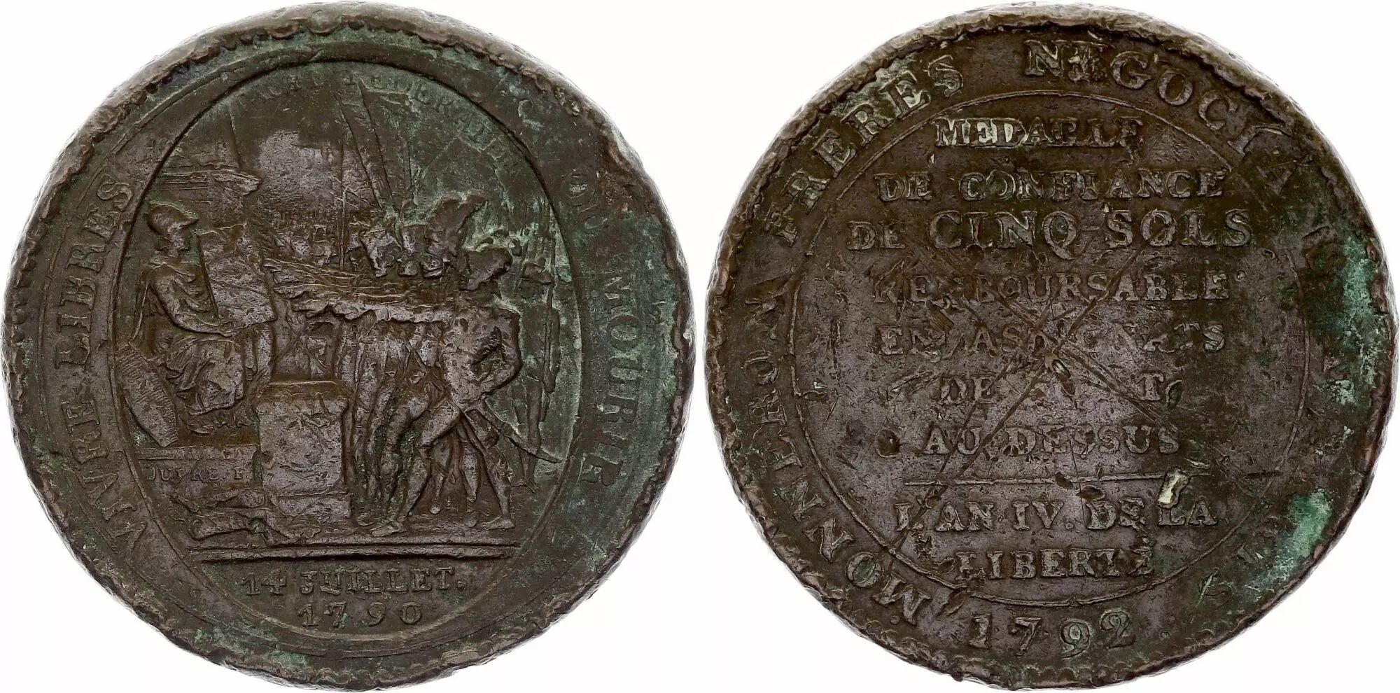 Pièce France 5 Sols, Constitution - Monneron au Serment - 1792 - An IV- Tn.31