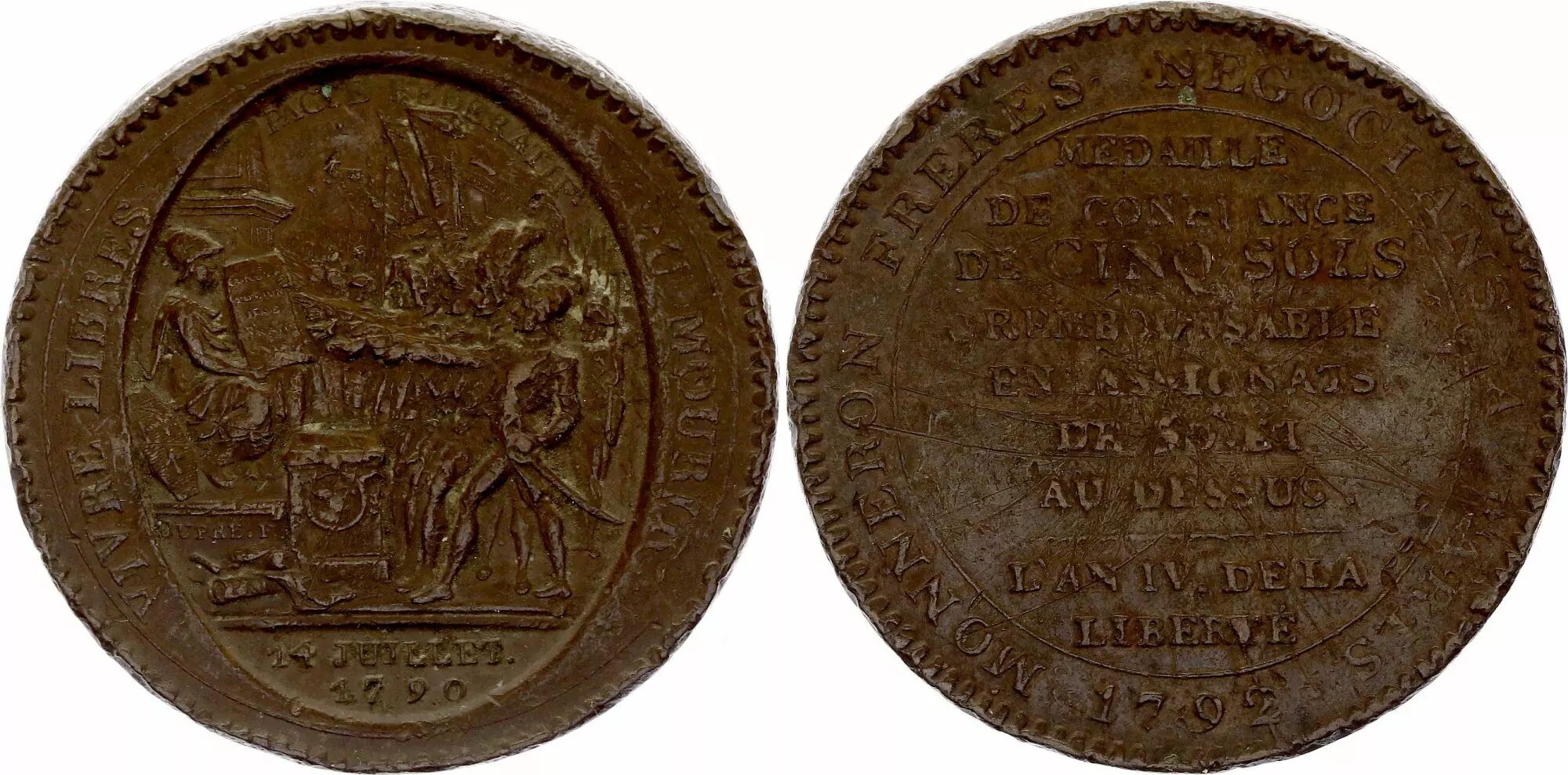 Coin France 5 Sols, Constitution - Monneron the Troth - 1792 - Tn.31