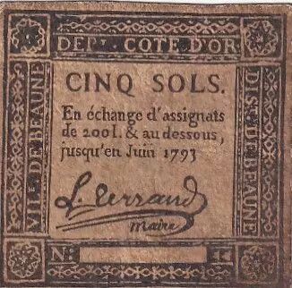 Billet France 5 Sols - Côte d'Or - Ville de Beaune - 1792
