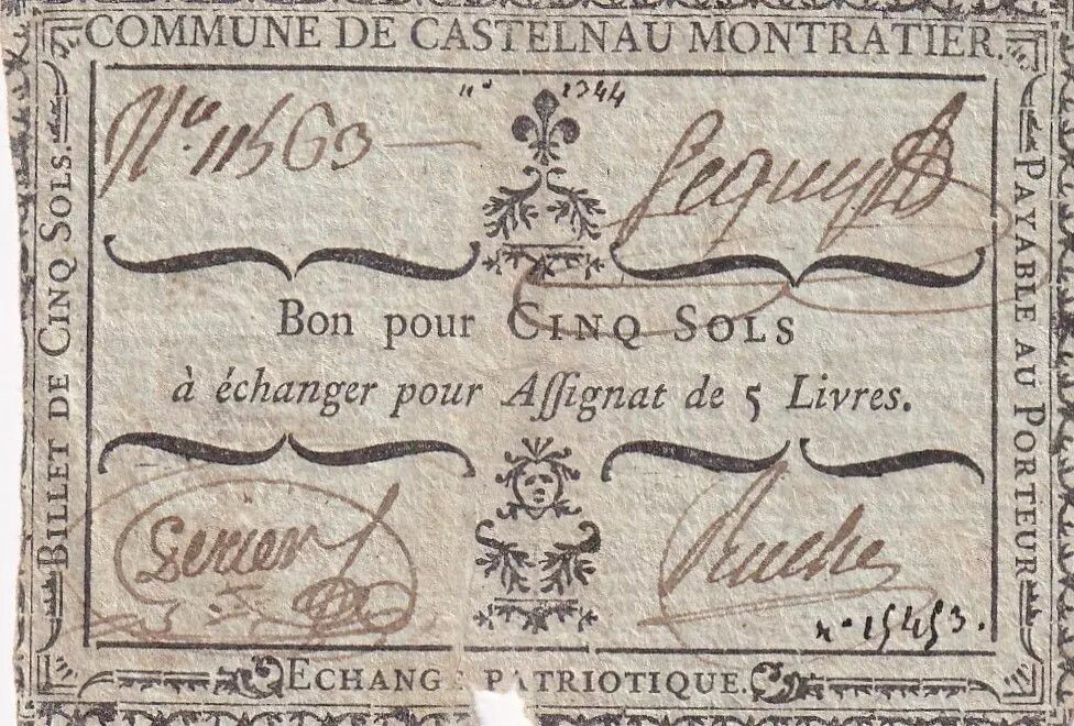 Banknote France 5 Sols - Lot - Commune de Castelnau Montratier - 1792