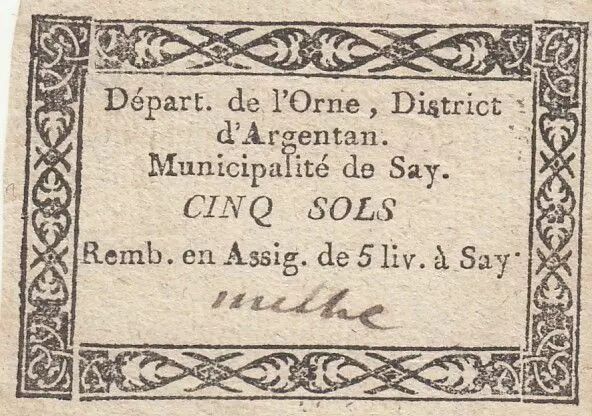 Banknote France 5 sols - Orne - District of Argentan - Municipality of Say - 1792