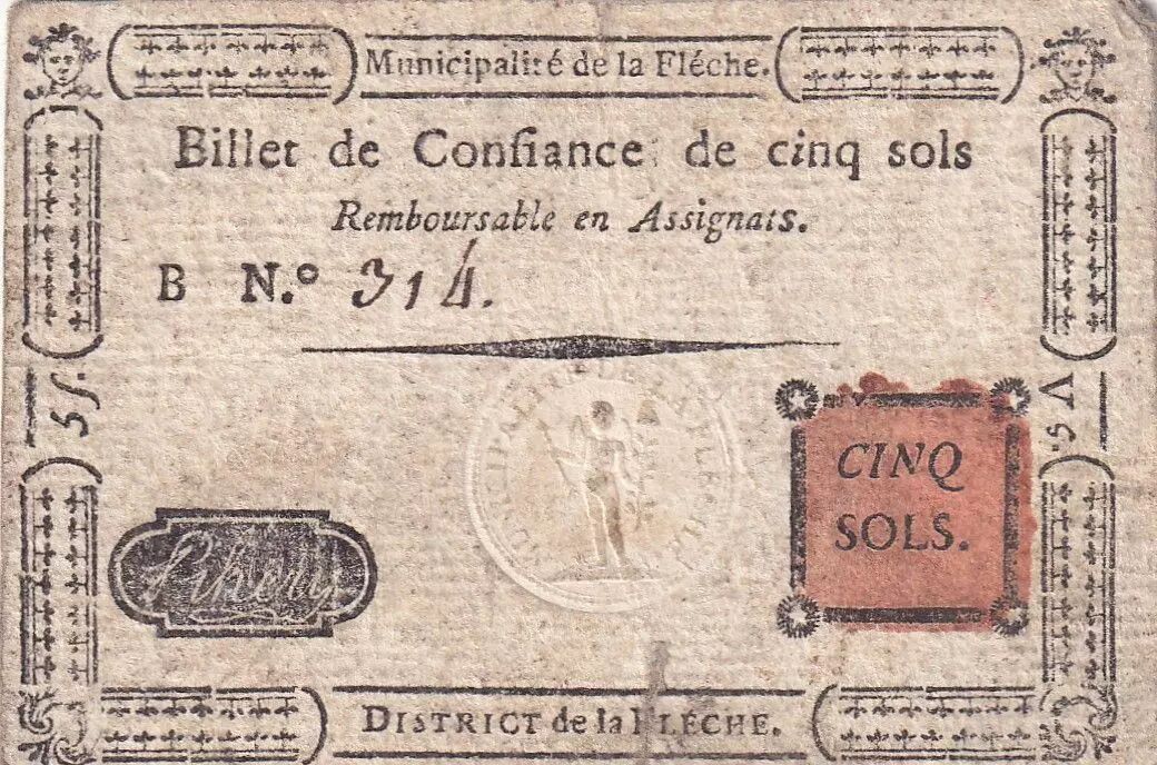 Billet France 5 Sols - Sarthe - Municipalité de la Flèche - Série B - 1791